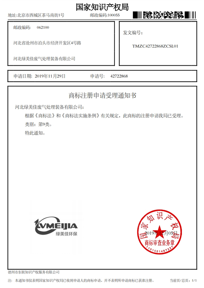 VOC专利证书网站首页 绿美佳产品 安装实例 生产场景 公司资质 新闻中心 关于我们 联系我们